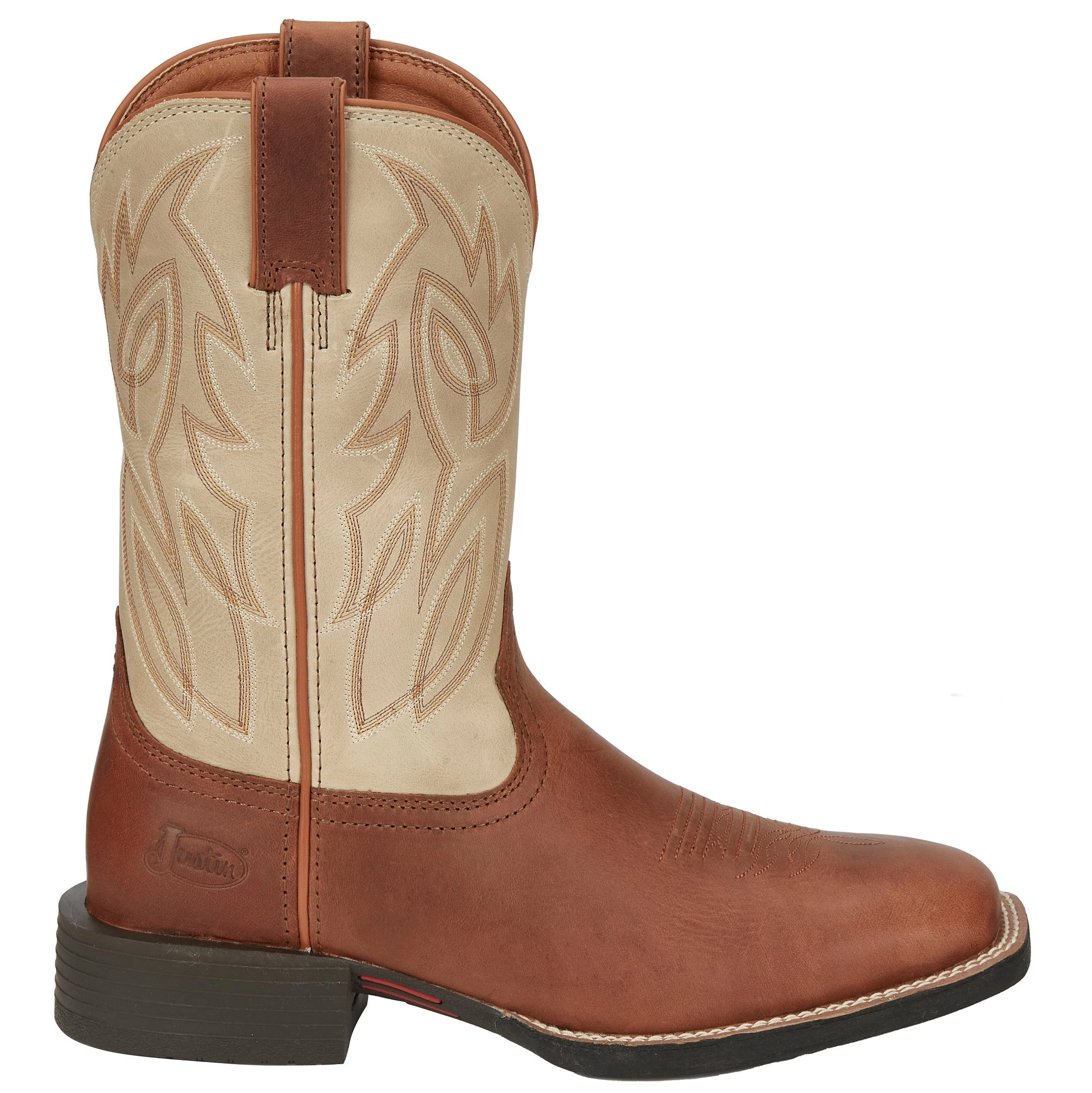 Vintage brown stitch design and piping adds detailed contrast, while the removable orthotic and breathable lining provides enduring comfort from the inside. This boot features the strength of our high-performing oil- and slip-resisting Stampede rubber outsole, and it’s finished with a full grain leather square toe and 1 3/8″ walking/block heel.
