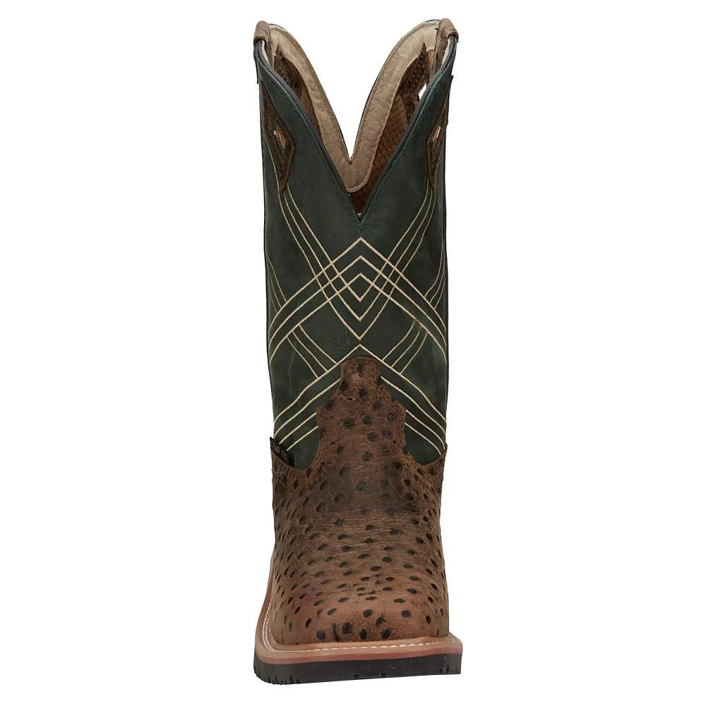 This Nano Composite square toe work boot by Justin Boot Company is a work boot that features a striking Hunter Green upper with bold stitching. The exterior is water-resistant and the traditional silhouette provides a classic cowboy boot feel. The Ortholite insole provides lasting comfort complementing the Vibram Commander-X5 rubber outsole that is oil and slip resistant providing stability on various terrain, so this boot is prepared to get the job done.