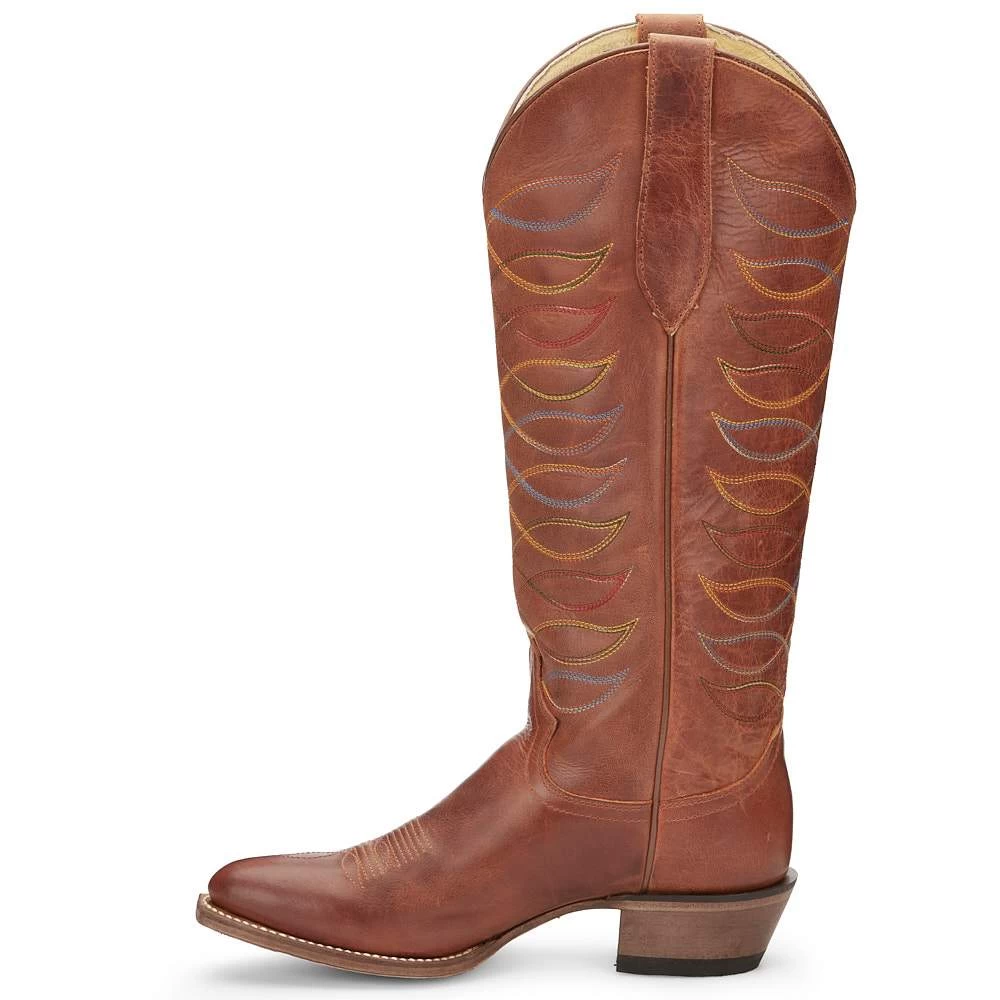 Inspired by some of Justins favorite 1970s and 80s styles from the Justin archives, the gorgeous 15” Whitley boot from Justins Vintage collection features beautiful rustic amber leather that’s embroidered with vibrant multi-color threads. It’s designed with a medium round toe, a cowgirl underslung heel and features our J-Flex Comfort System® insole for feel-good comfort and support. This striking throwback style celebrates Justin Boots rich bootmaking heritage and will make a stunning foundation for any look.