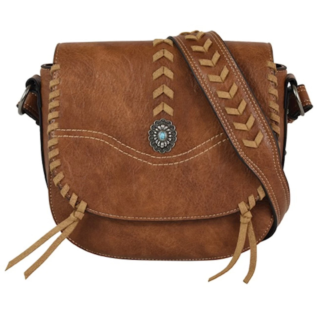 Justin Brown With Laced Trim Crossbody Saddle Bag