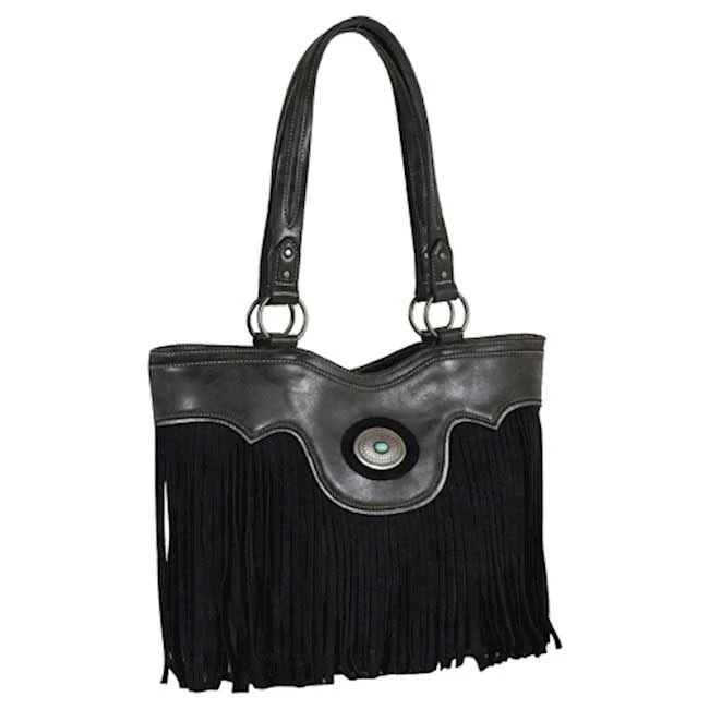 Justin Graphite With Suede Fringe Tote Bag