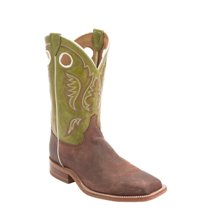 The Austin Cognac is an 11-inch tall Justin Bent Rail men’s cowboy boot that is both refined and innovative. Featuring a fresh green leather upper embellished with a rustic-themed stitch pattern and a rugged brown leather foot, this boot is an original. The square toe and low heel provide a relaxed fit and the J-Flex Flexible Comfort System® insoles give the support and comfort you need whether you’re in the saddle or working the dirt. This style is proudly Made in the USA with global parts.
