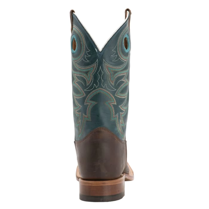 The 11-inch tall Austin Teal Bent Rail® is a classic Men’s cowboy boot with bold details. Its dark topaz blue leather upper is accented by an inventive yet clean stitch pattern and is perfectly complimented by a rich brown leather boot. Built for comfort, this boot features a J-Flex Flexible Comfort System® insole that provides the support and cushion your foot requires. This style is proudly Made in the USA with global parts.