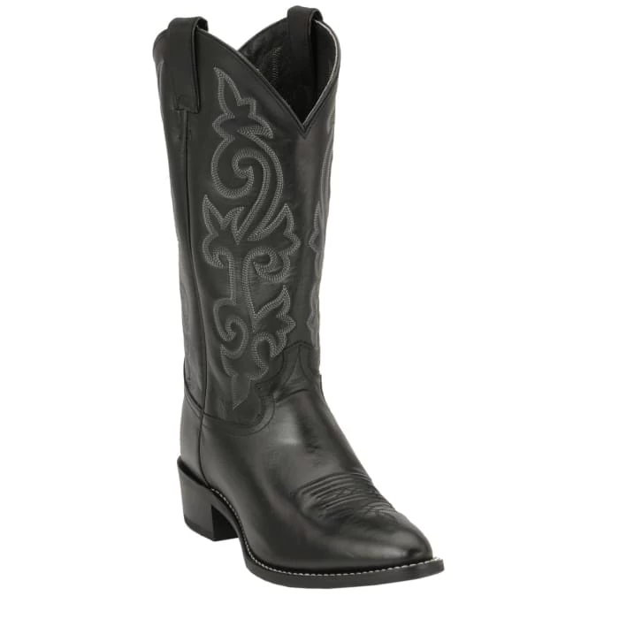 Suitable for the dancin’ man or the cattleman Justin Classic London Calf western boots are made with traditional Justin pride and quality. These boots must undergo rigorous tests before earning the Justin name. Features include cushion insole to ensure comfort in every step you take steel shanks for added arch support lock stitched pull straps for extra strength and intricate top stitching for added beauty. Also includes inside lining to resist the effects of perspiration heel pads for extra comfort layered leather heel base and heel caps for strength durability and sure-footing.1 9/16′ heel. Full welt.13′ upper.