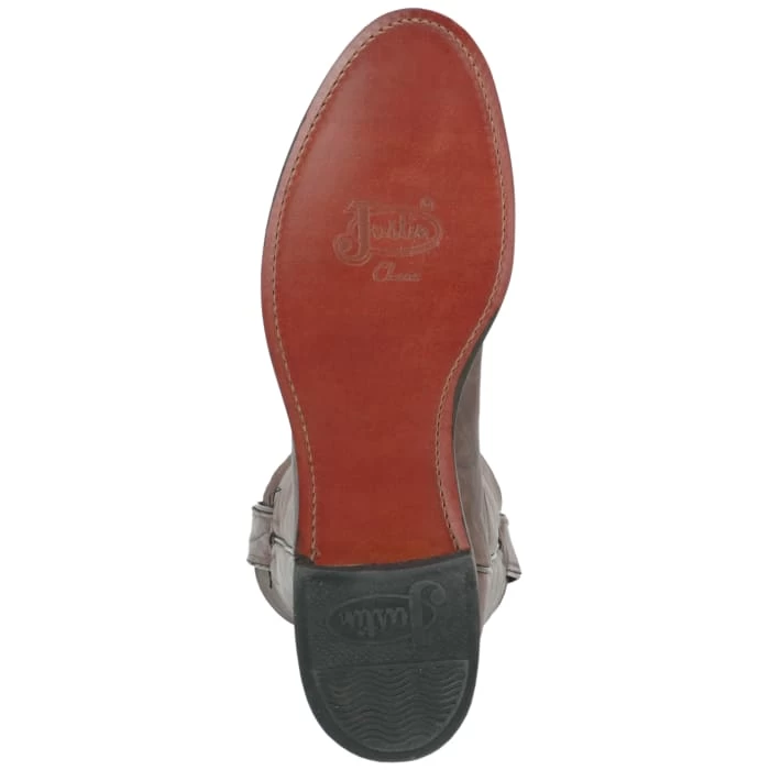 Building classics is what Justin is all about. Known for a proud heritage of innovation and craftsmanship Justin offers their original roper featuring all-leather vamp and quarter lining for quality inside and out leather outsoles leather pull straps and fancy third-row stitching for added beauty. Marbled Deerlite top and vamp. 10′ top. Roper toe. 1 1/8′ roper heel. (NOT AVAILABLE IN A WIDTH)