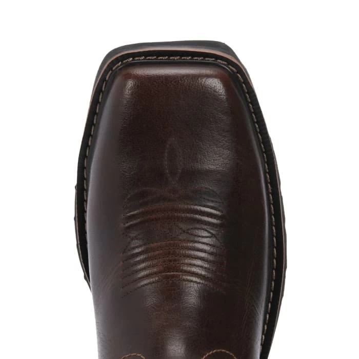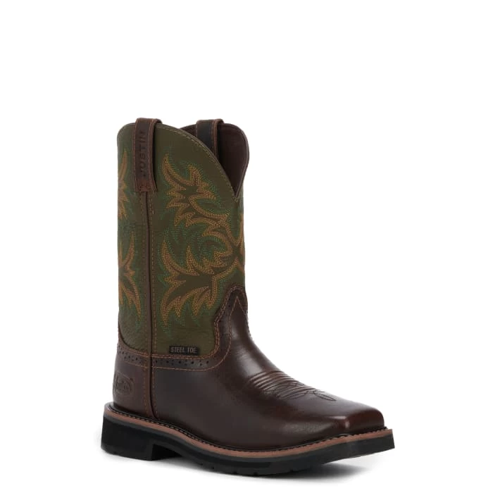 A bright contrast to a long work day, the Driller Brown Steel Toe 11-inch tall men’s work boot is striking. Its cactus green leather upper is embellished by a vibrant green and yellow stitch pattern and is paired with a polished brown square toe vamp. This boot features a steel toe for added protection, the J-Flex Flexible Comfort System® insole that cushions and supports the foot, and the Stampedeâ„¢ dual density rubber outsole with resistance to abrasion, chips, slipping, and marking which allows you to comfortably work on any surface and meets ASTM F2413-11, I75, C75 EH safety footwear standards.