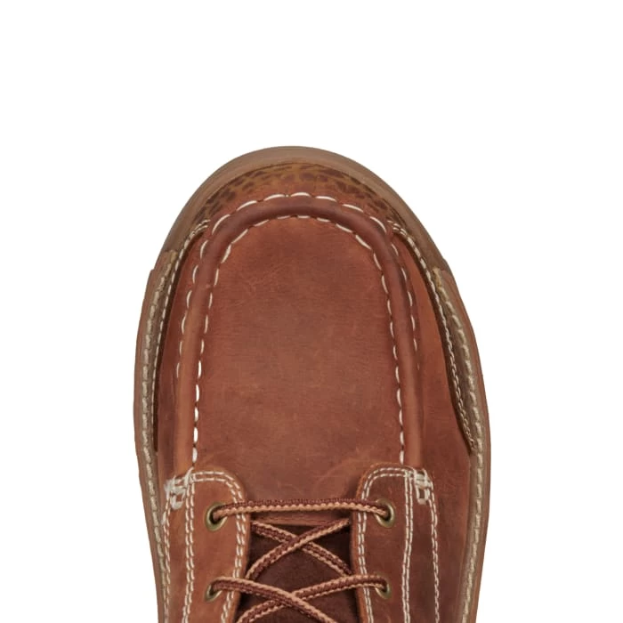 This boot delivers the on-the-job comfort and performance you need in a versatile design that’s right at home off-duty too. The 5” Corbett Waterproof EH Mocc Toe boot from our Stampede Light Duty collection is powered for work on-site or in the office and ready for play in brown cowhide with contrasting printed accents. Built with waterproof construction and an oil- and slip-resisting rubber outsole, this mocc toe lace-up features a removable Ortholite® insert for cushioned comfort. It’s Electrical Hazard Rated to meet ASTM F2982-11 EH standards.
