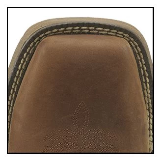 Justin presents this stampede work boot with a wide steel toe, rustic tan leather, and ortholite dual denisty. This boot meets ASTM F2413-11, I75, C75 EH standards and is slip resistant.Â