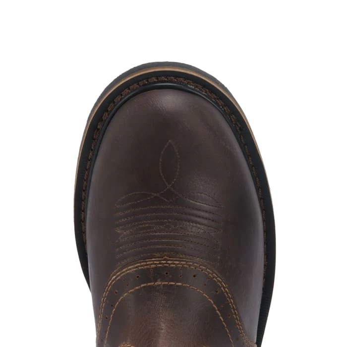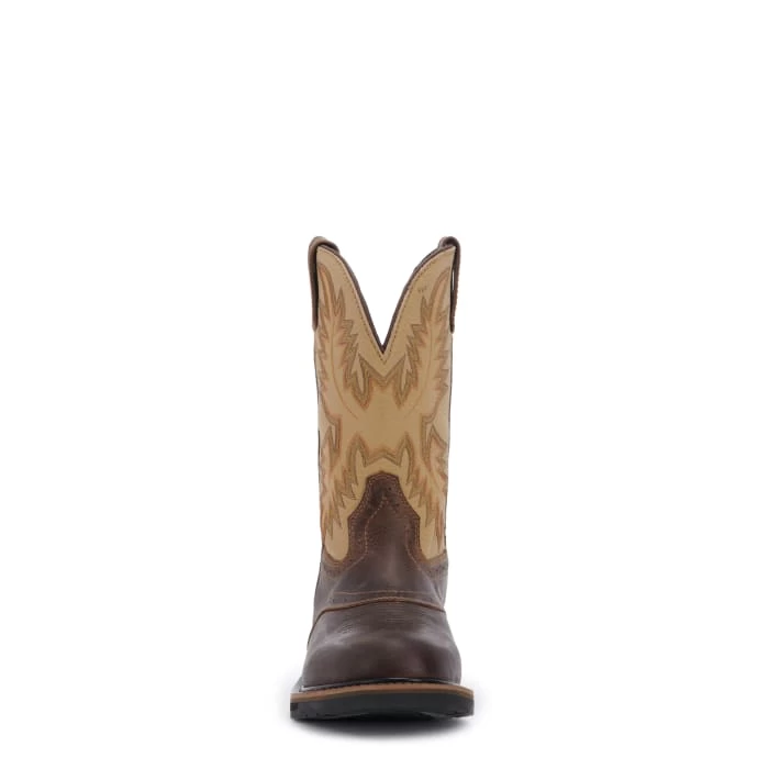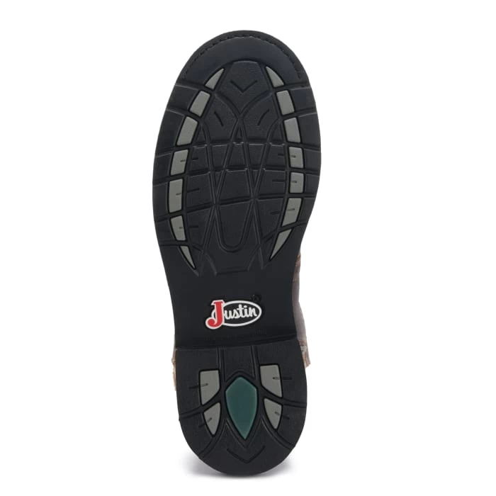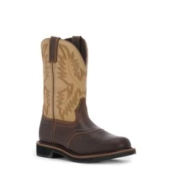 Both functional and stylish, the Justin Superintendent is an 11″ tall men’s work boot has versatility. Its bone white leather upper is accented by a pastel yellow and green-toned stitch pattern. The golden brown perforated saddle foot has a round toe and is slightly distressed giving this boot a vintage feel. The J-Flex Flexible Comfort System insole adds cushion and support while the Stampedeâ„¢ rubber and EVA combination outsolep provides resistance to abrasion, chips, slipping, and marking which allows you to comfortably work on any surface.