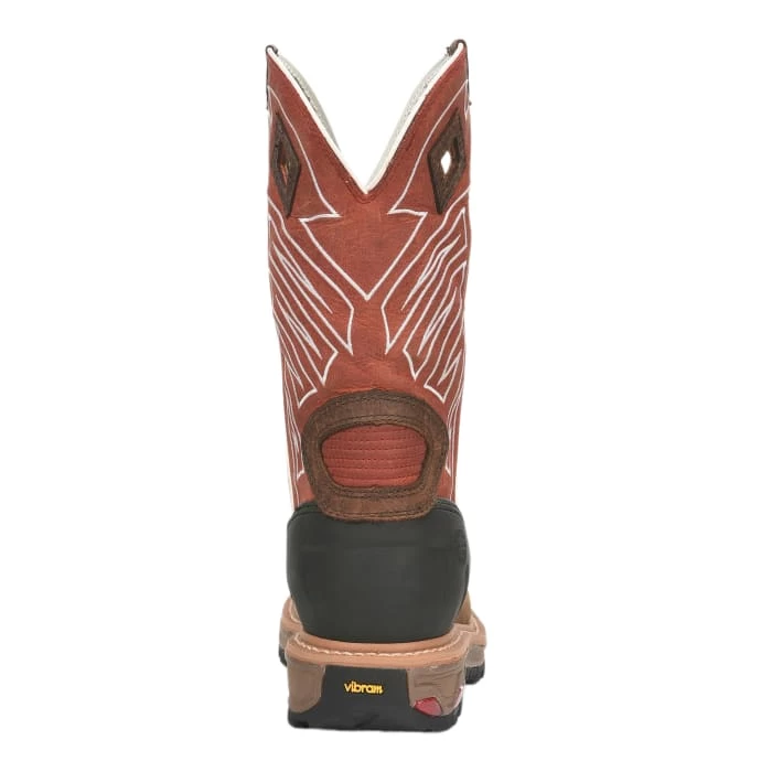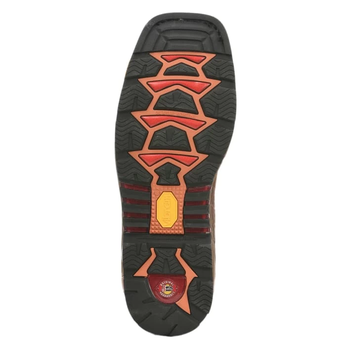 The 11-inch tall Roughneck Chestnut Waterproof Steel Toe men’s work boot features a striking rustic upper with bold white stitching along the upper and a deep brown leather vamp. The exterior is water-resistant in any wet or hazardous conditions and its traditional silhouette provides a classic cowboy boot feel. The broad square steel toe offers maximum protection and a lightweight fit throughout the day. The Ortholite® insole provides lasting comfort and the Vibram® Commander-X5™ rubber outsole is resistant to heat, oil, chipping, chemicals, and slipping and provides stability on various terrain so this boot is prepared to get the job done. This boot is electrical hazard rated and meets ASTM F2413-11, 175, C75 EH safety footwear standards.