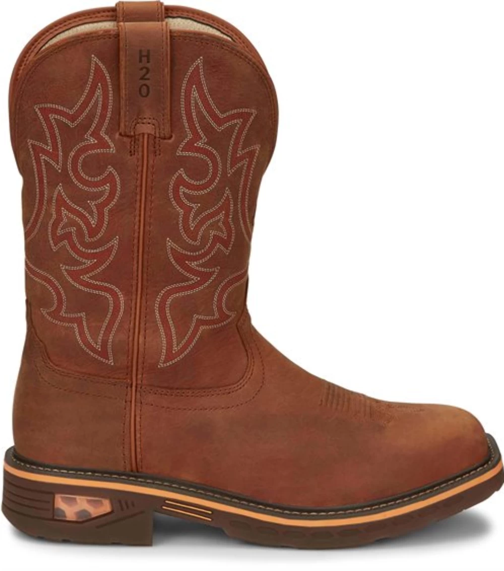 This 11” waterproof boot in Russet leather is crafted with high-tech innovation from the inside out. It’s built on our new lightweight UltraHex™ platform featuring an Ortholite® insert for comfort and breathability and a strong shock-absorbing honeycomb midsole to reduce foot fatigue during a long day’s work. On the ground, the abrasion-resisting, slip-resisting and oil-resisting outsole delivers exceptional durability with long-lasting wear. The waterproof construction helps keep your feet dry in wet conditions and environments. This boot is electrical hazard rated and features a non-metallic shank.