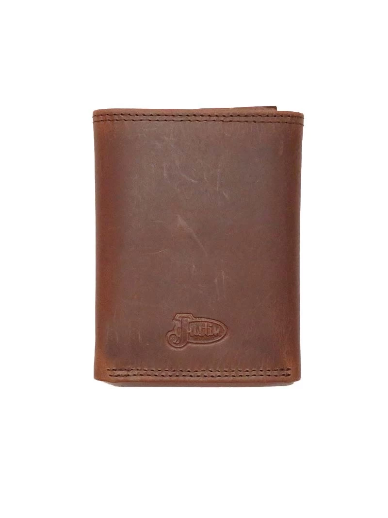 Justin Tri-Fold 2 Tone Black Brown Leather Wallet 1920568W4 is both simple and practical in design, as well as durable. Inside features multiple compartments for your credit cards, cash, and an ID window.