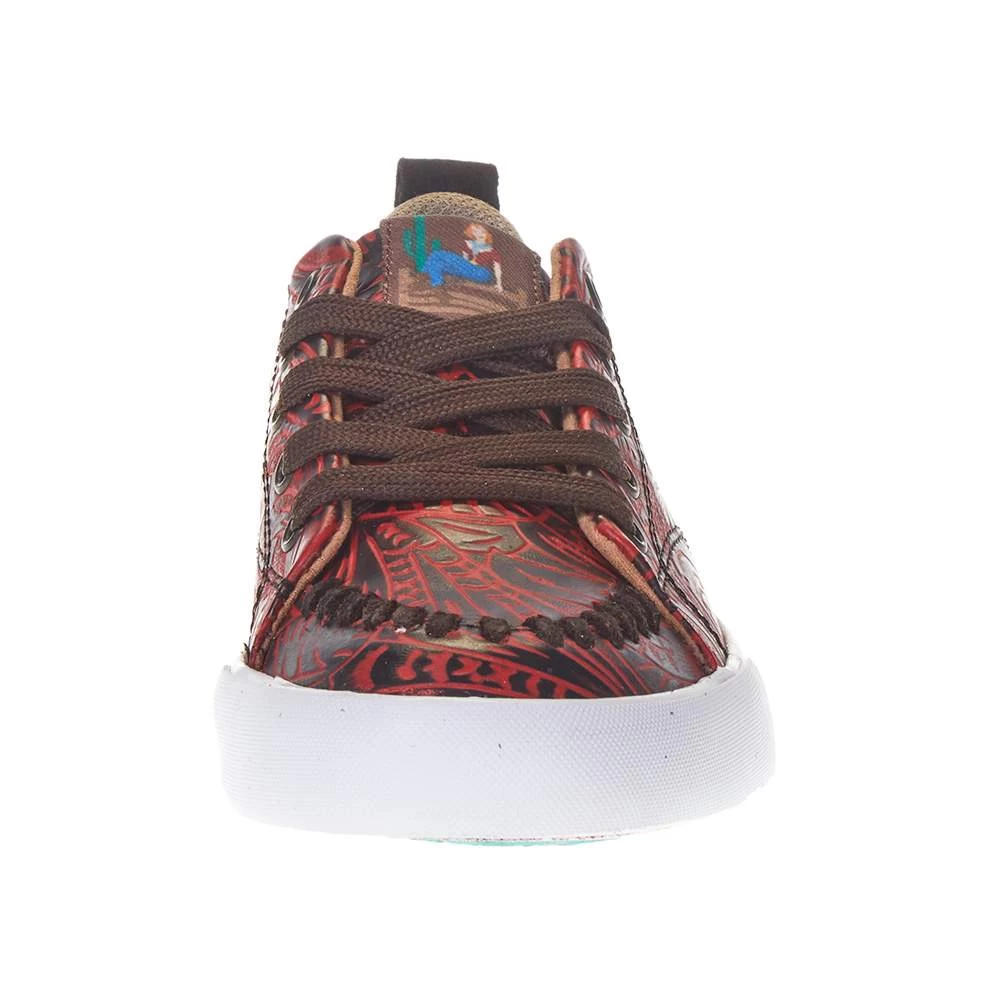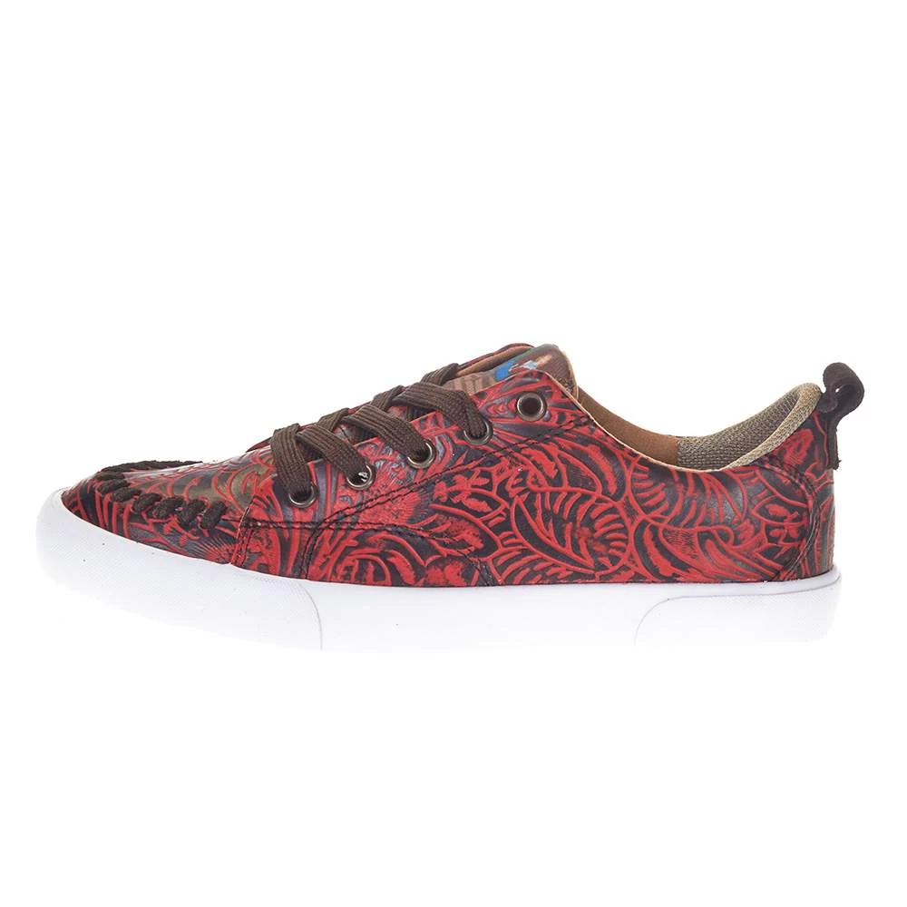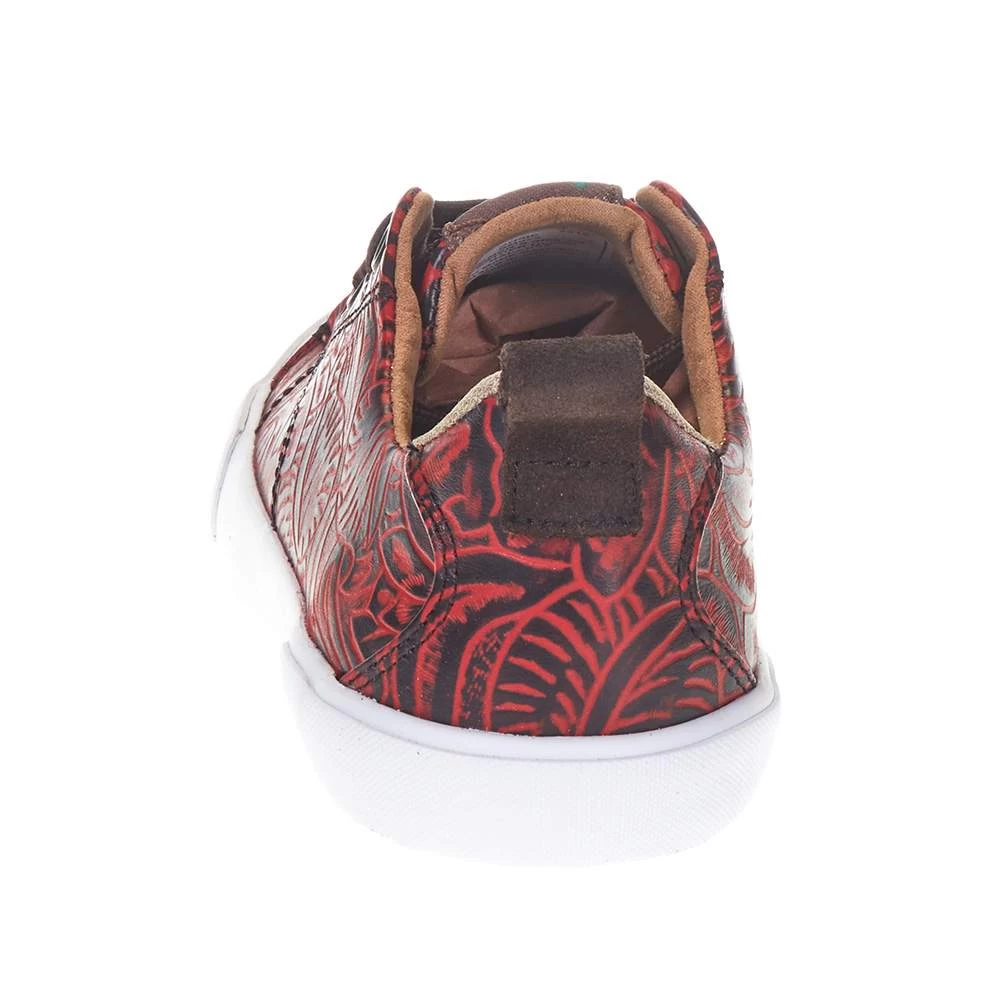 Rev up your casual look with unique western flair in our gorgeous Susie sneaker in red leather.